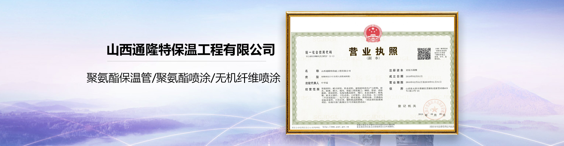 山西通隆特保溫材料有限公司是集生產、銷售、施工、服務于一體的現代化企業,通隆特保溫材料廠址位于太原市清徐縣徐溝鎮南內道村,辦公地址在太原市萬柏林區奇天瑞鋼材南市場B區18號,公司生產:聚氨酯黑黃夾克保溫管(管中管)、聚氨酯預制直埋保溫管(玻璃鋼防腐)、聚氨酯瓦殼、玻璃棉制品、橡塑保溫材料;承攬管道防腐、外墻保溫、噴涂保溫、鐵皮保溫工程,公司技術力量好,擁有生產設備,生產工藝和質量檢測手段,并且還注入了大批高技術...